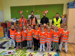 Dodano: 16.09.2025 POLICJANCI WSPÓLNIE Z PRZEDSTAWICIELAMI GDDKIA UCZYLI DZIECI BEZPIECZNYCH ZACHOWAŃ NA DRODZE -
